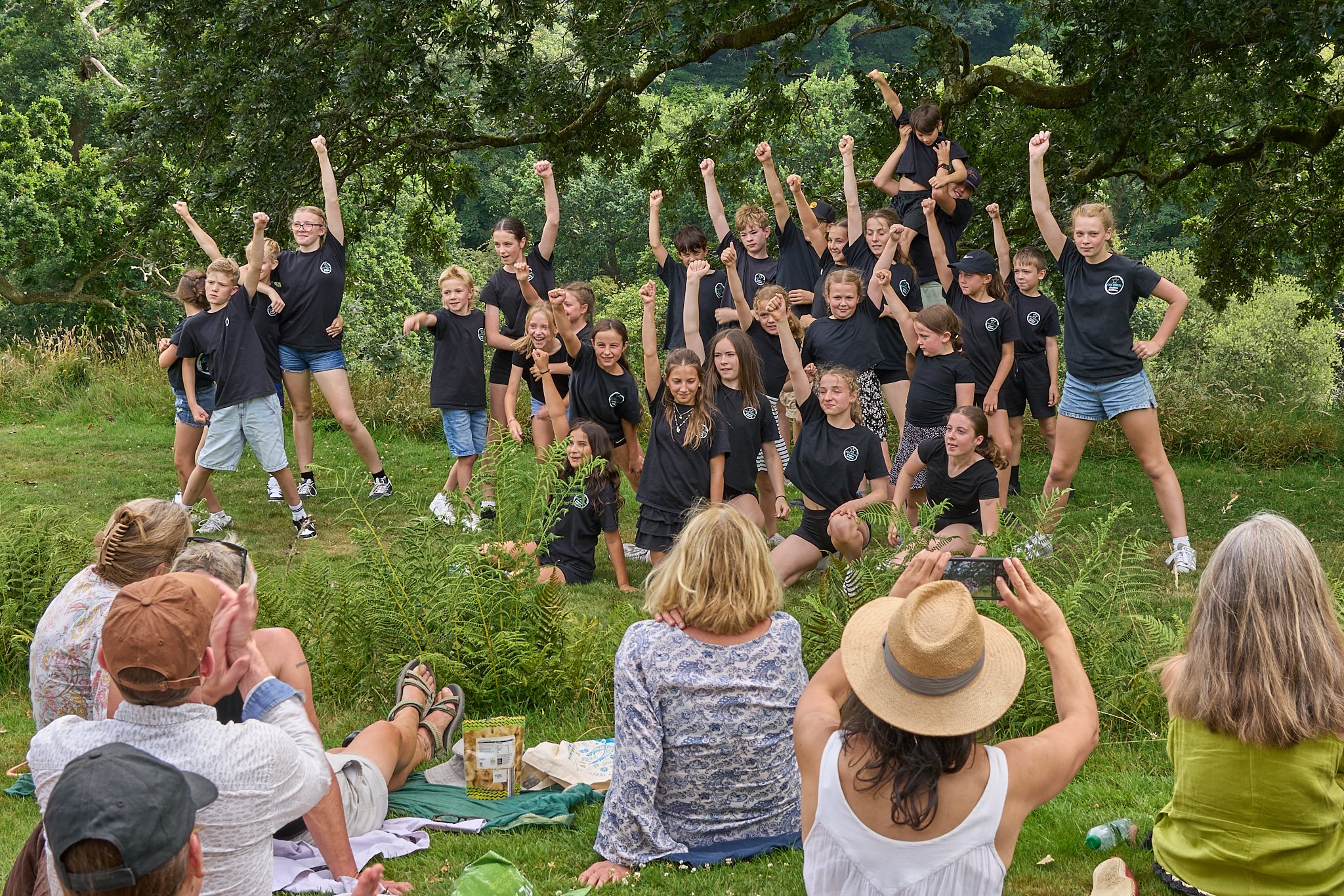 A vibrant display of singing and dancing by 30 teenagers of the Kate Rogers Creative Academy in the magical gardens of Lavethan, a little-known manor house near Blisland. The large audience included Sir Michael Morpurgo, who spent time afterwards talking with the youngsters and signing their well-thumbed books.
